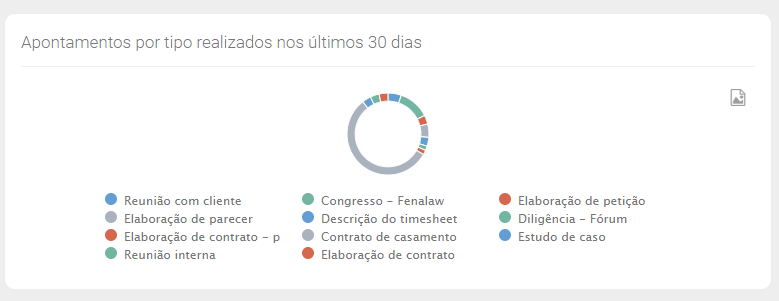 Neste card são exibidos todos os tipos de apontamentos criados nos últimos 30 dias e a sua quantidade.