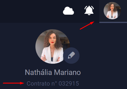 Para visualizar o número do seu contrato clique na imagem de perfil, logo abaixo da imagem é exibido o número de contrato.